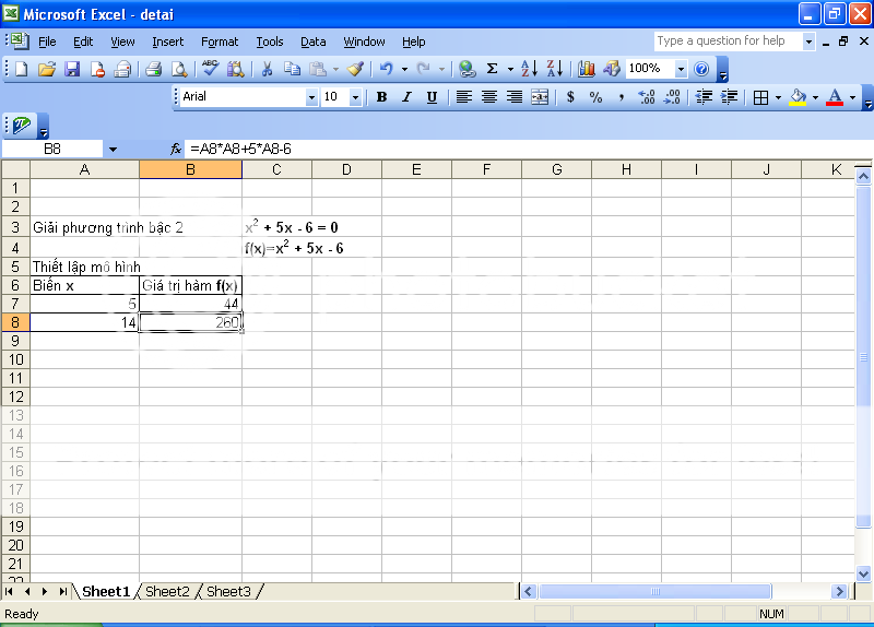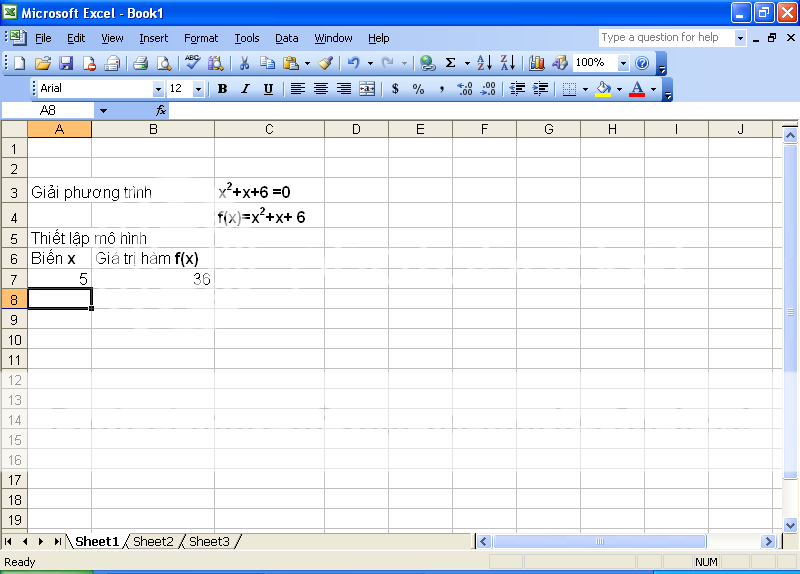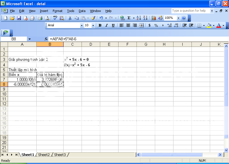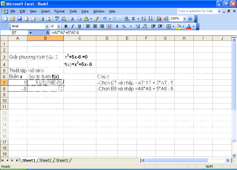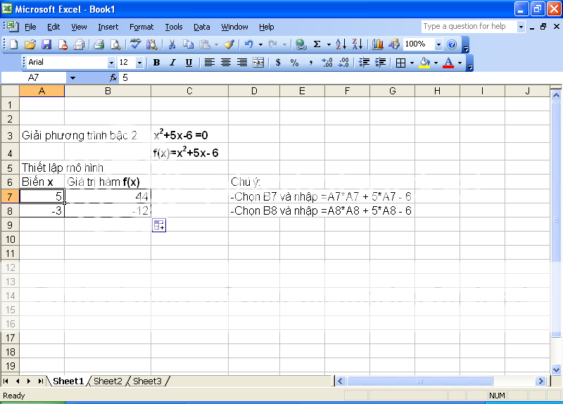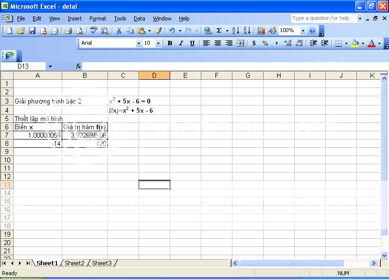 Nguyên tắc chung để giải phương trình bậc n trên bảng tính Excel là phải xác định các biến, các hàm, lập mô hình và sau đó dùng Goal Seek hoặc Solver để dò tìm nghiệm.