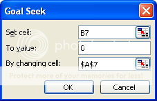 Bước 2: Chọn ô B7, thực hiện Tool/Goal Seek khai báo trong hộp thoại (Hình 2)