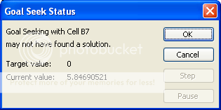 Từ thông báo trong Hình 3 ta thấy Goal Seek không tìm được giá trị nào của x để f(x) đạt giá trị 0, có nghĩa là phương trình này vô nghiệm