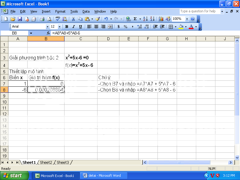 Vậy Goalseek đã tìm được 2 nghiệm phân biệt là